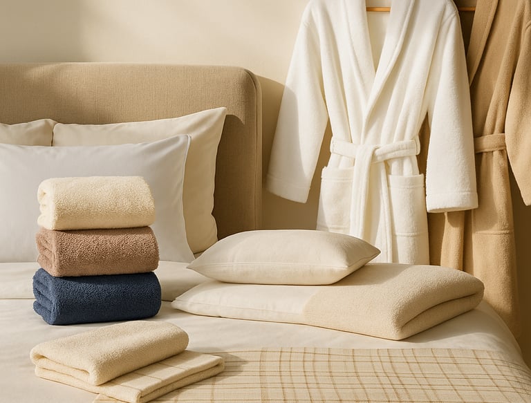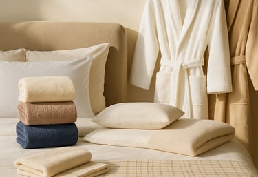 Explore our extensive range of towels, bathrobes, and cotton-based products crafted with care.